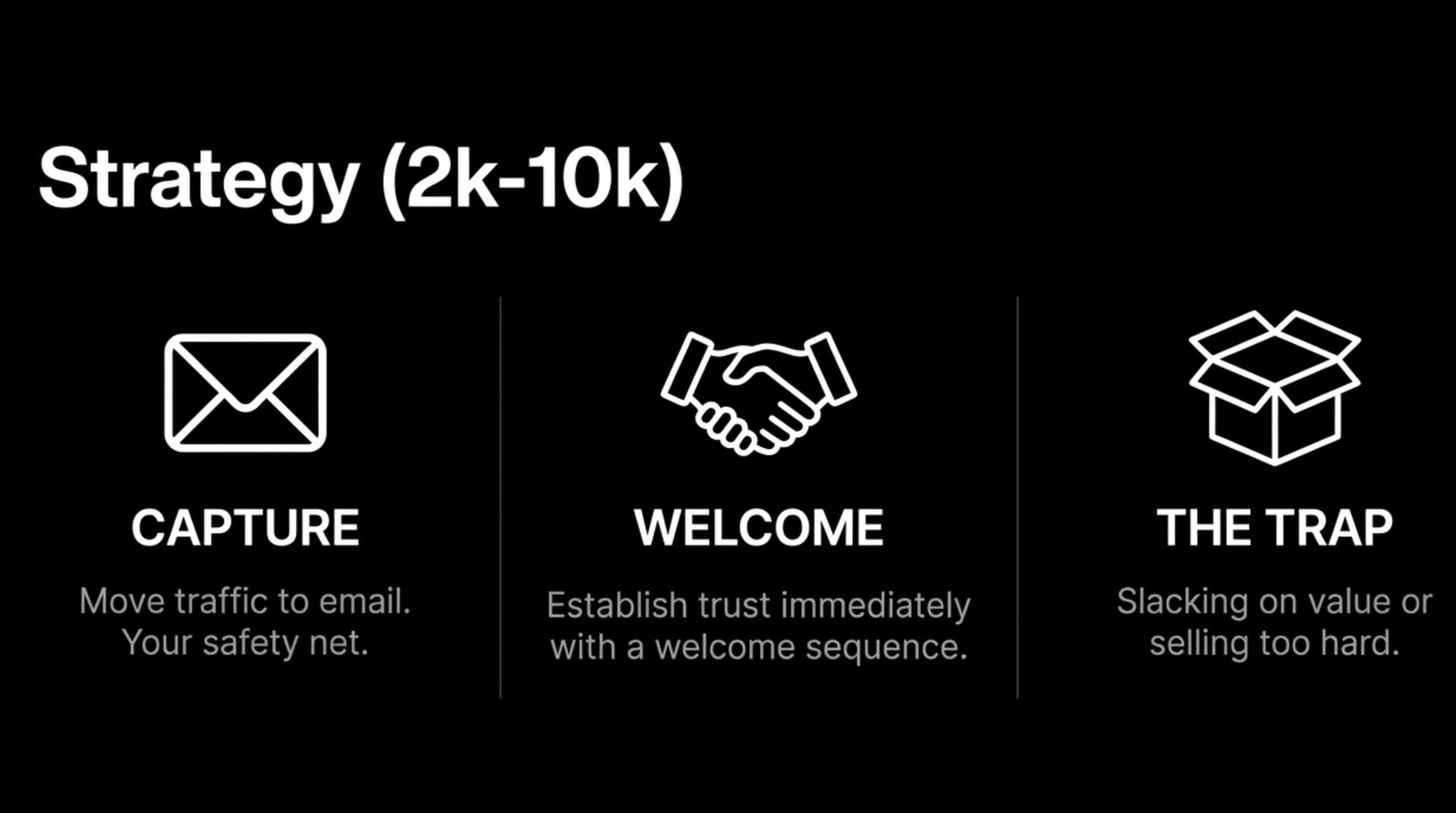 If you're above 10k, perfect your offer and double down on what works.